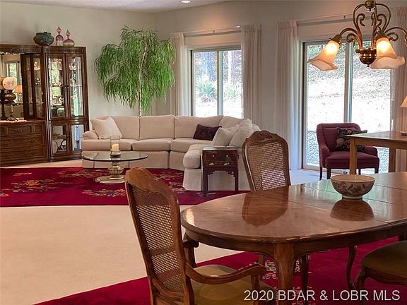 1.8 Ac Golf Course Living at LAKE of the OZARKS could not get better! Beautiful glass 4 Seasons Room entry to home, 1 Lev liv'g, 2901 SqFt, Gentle park-like setting on 4Protected Lots w/350 Ft Golf Course Frontage @ #12 Tee Box. Well maintained, 3Bed, 3Baths, Den/FmRm (could be 4th Bed). BIG Open LvRm/DinRm Area. Lovely well planned kitchen & eating area. 6Slid'g Doors for lots of natural light, H20 Filter System, Jacuzzi Walk-in Tub, 8-9 Ft Ceilings. Zoned elect HVAC units w/3rd gas backup furnace. Auto-Irrigated, landscaped yards. Large gentle back yd boasts of patio spanning back of home & Gazebo to watch golfers Tee Off. 2 Car Attachd Oversized Garg & Detached Heat/Cooled 3rdGarg/MAN CAVE. Abundance of extra Park'g, Huge circular drvway. County Sewer. Few steps or cart trail to VERY AFFORDABLE Lake Valley Country Club, Restaurant, Pool, Tennis, Mature 18Hole Golf Course/Driving Range awesome for whole family & socializing. 5 Minutes to Town & Lake. MUST SEE - EXTRA FEATURE SHEET