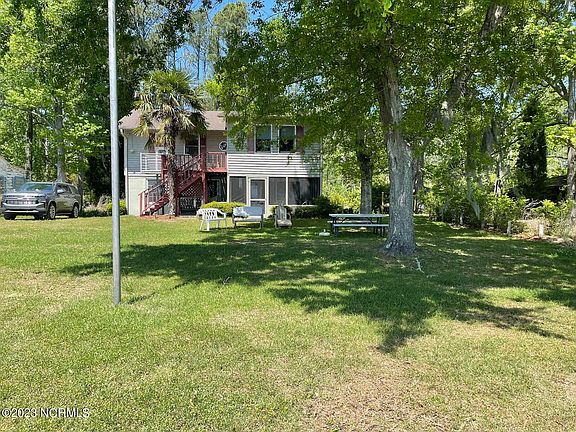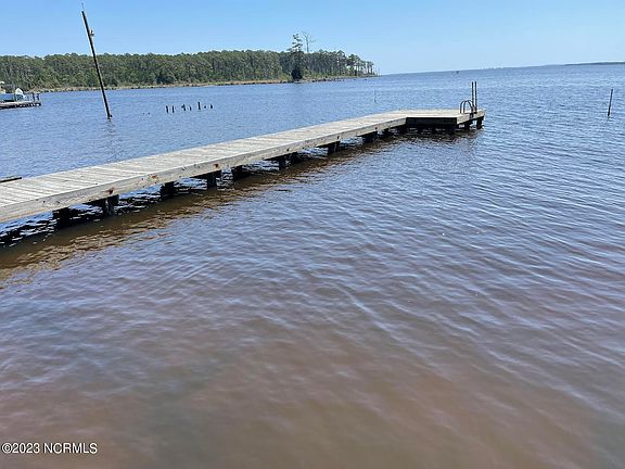 Incredible, gorgeous views of sunsets on the Pamlico River from this adorable two level cottage. It offers 2 bedrooms, one bath, a full kitchen and living area on both lower and upper level. An outside elevator lift makes it convenient to take items to the upper level. Upper level has a deck to enjoy, and lower level has a screened in porch with a swing to enjoy the breeze from the river. It has 73 feet of bulkhead, a pier and a kayak ramp.