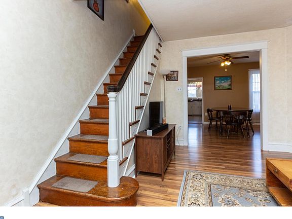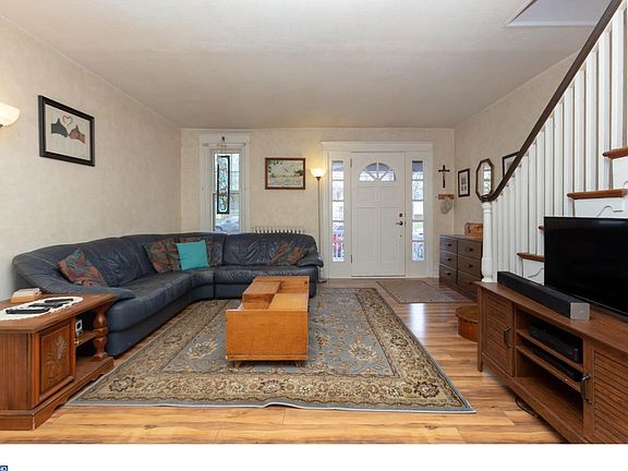 Enter through the bright and sunny living room. Refinished hardwood floors throughout main level. Formal dining room. Large eat-in kitchen, lots of new counter space, ceiling fan, black appliances and replacement tilt in windows through out the home. Upper level features 3 nice size bedrooms with hardwood floors. Updated hall bath with natural light. Partially finished walk out basement with full bath and Laundry. Fenced in rear yard, private off street parking and No HOA. Close to shopping and public transportation and still only 20 minutes from Lake Nockamixon. Make appointment today!!"