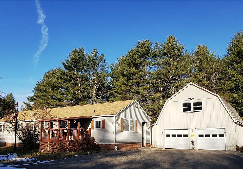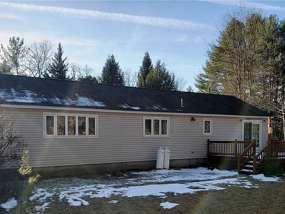 Looking for one floor living in the country? Situated on 5.8 acres this 3 bedroom, 1500 plus sq. ft. home is just what you’re looking for. Open kitchen/dining/living room area. A separate family or office room. Master bedroom with it’s own bathroom & laundry, and sliding doors open to the deck overlooking the back yard. Off the kitchen is a closet converted to a pantry for plenty of storage & ample closet space throughout the home. The garage has a 3rd overhead door on the side for recreation or utility vehicles, a workshop area & a full second floor for storage. Add to this on the property is a slab for a mobile home with well, septic , electric and a 2 stall garage. (Possible for a rental unit or in-law home) Expansive lawn & wooded area for your own recreation. Close to snowmobile trails, hunting area & Adirondack Park. Ideal for a permanent home or vacation get away location!