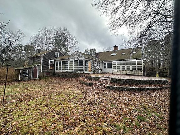 The Jacob Damon House is an oversized antique Cape that is waiting for someone to create the house of their dreams in Norwell. Set on a full acre surrounded by rock walls, giving it a true country feel. The home has some wonderful features, with multiple fireplaces in the center of the home, exposed beams, vaulted ceilings, original period details including warm honey wide plank flooring & built-ins. A small all glass solarium is located just of the living room. There's a huge 3 story barn attached to the home, with large sliding barn doors & stairs that lead up the the loft area. A circular red brick terraced patio is just outside the back door, leading you to the large grassy back yard. There's also an enclosed porch with a rustic wood ceiling & brock floor - turn this room into a 4 season room to add additional living space to the home year round. Just a half mile down the road from the entrance to Wompatuck State Park