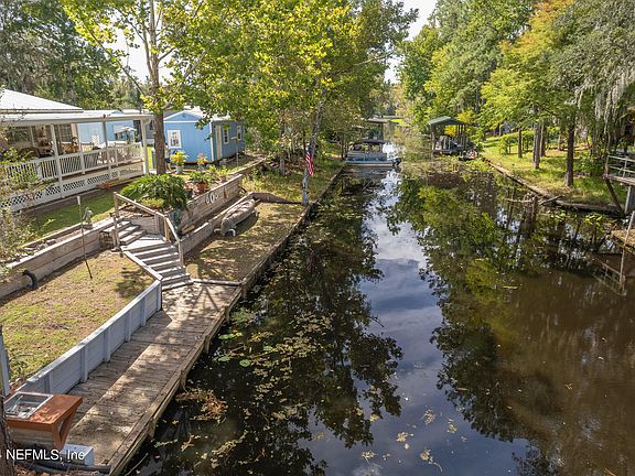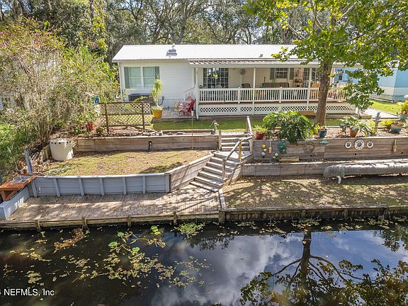 Charming 3-Bed, 2-Bath Double Wide on Canal with Boat Access! This meticulously maintained manufactured 2004 home offers 3 spacious bedrooms & 2 full baths. The home boasts beautiful tile & man. wood flooring throughout, providing a warm & inviting atmosphere. The roof is only 5 years old, ensuring peace of mind for years to come. Surrounded by mature oak trees & lush landscaping, the property features stunning paver walkways that wrap around the home, creating an oasis-like setting. Located on a canal with direct access to Dunn's Creek, this property is perfect for boating enthusiasts. Enjoy outdoor entertaining on the expansive covered patio, which connects to the home through two sliding doors, ideal for gatherings & social events. The property includes two wells-one dedicated for irrigation & the other for household use-along with a **NEW** water softener system for added convenience. This beautiful home is move-in ready & perfect for anyone seeking a peaceful waterfront retreat!
