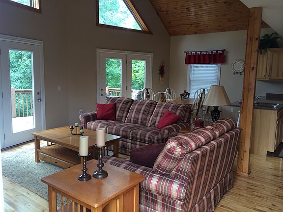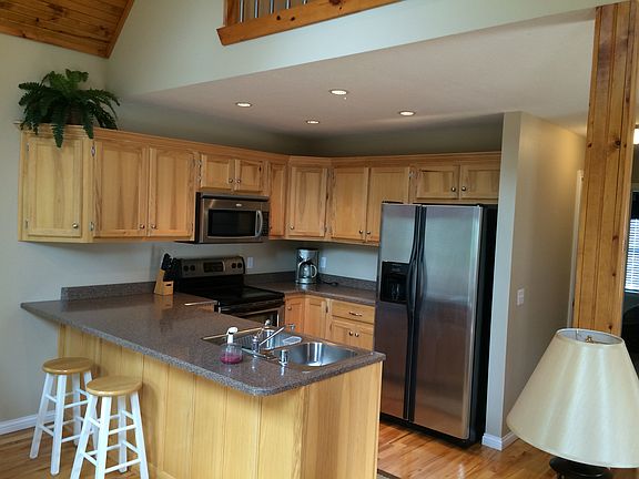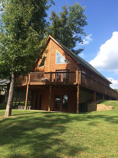 Very nice Furnished Lakefront Home with Boat Dock. Sellers want to move this home because they are moving on to bigger and better things.This remarkable lakefront home has plenty of glass facing the lake for you to enjoy the view. The main floor has hardwood floors in the Large open great room with a beautiful kitchen combo with custom built cabinetry and Stainless appliances. Also you will find the master suite, another bed room and full bath. A open loft bedroom with full bath. This home has 4 or 5 bedrooms and 3 full baths with a grand view of Rough River Lake. The open deck lets you soak up the sun and enjoy the nice evening sunsets and early morning sunrises. The loft bedroom is cozy with a great view! The lower level has a large living area as if you had your own theater and recreation room with 2 bedrooms and a full bath also. The developer has huge enclosed boat storage facilities on site for your boats, four wheeler's, bus, or camper or whatever you may need extra room for. This home is located in beautiful Holiday Rough on Rough River where there are also fishing ponds, hiking trails, water falls, scenic views and plenty of wildlife for your enjoyment too. Call today! Boat Dock and transfer with COE approval.