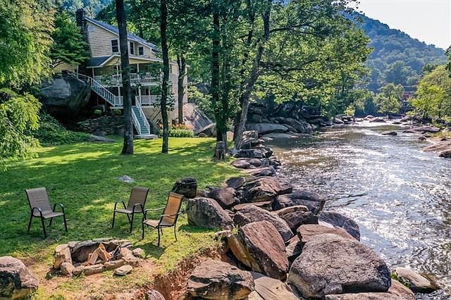 Lake Lure & Chimney Rock are walking distance away with restaurants, specialty shops & much more. One of a kind, 5 bedroom, riverfront oasis with over 300 ft on the Rocky Broad River and Spectacular Views of Chimney Rock and The hickory Nut Falls! This vintage 1930's historic land mark has been updated and is in great condition! You'll also enjoy the stone guest cottage which also has been updated and is situated in the midst of massive boulders and the sound of rushing trout waters. This property is absolutely beautiful and will make the perfect mountain escape, rental investment or wedding venue! The options are unlimited, so come and visit one of the regions most scenic properties and be sure to take the self guided virtual tour and do a thorough walk through room by room at your leisure.