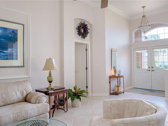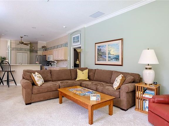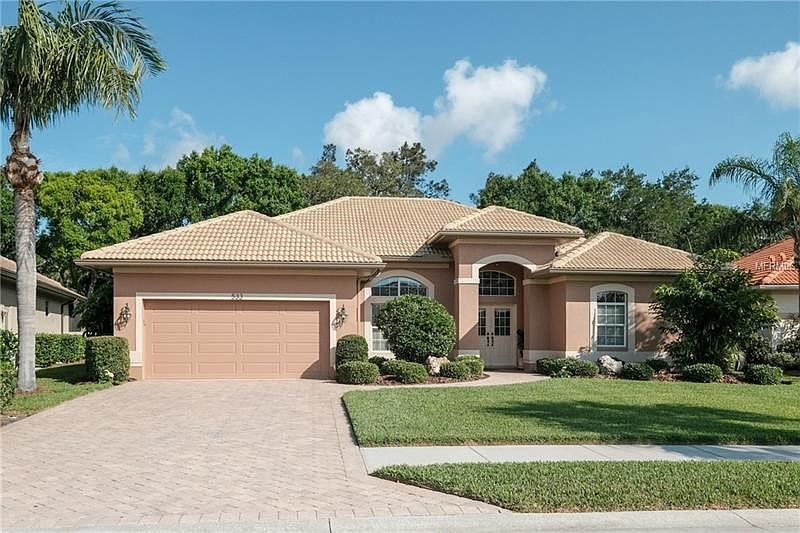 Enjoy a backyard oasis in this quality built J&J home, overlooking Hatchett Creek. Spacious and elegant 3 BR 2 BA split plan offers 12' ceilings in the main living areas, with crown molding and nice architectural detail. The kitchen is open to a nice size dinette area with aquarium window looking out to lanai and pool, as well as the family room. Light maple cabinets and corian counters, breakfast bar, closet pantry, desk, and an island with built in wine rack and granite top are features of the kitchen. The family room has a cozy electric fireplace and built in shelving and television niche. A wall of sliding glass doors welcome you to pool area. The master bedroom also has sliding glass doors to the lanai and a large master bath with Jacuzzi jetted soaking tub, dual vanity and Roman shower. Two guest bedrooms share a hall bath. Very spacious laundry room has storage closet and utility sink.Pool is solar heated for your enjoyment. You will love all these features in the home but you will be WOWED when you step into the private creek front backyard! Lush landscaping, mature oaks and total privacy!Freshly painted exterior,3 zone A/C replaced in 2011, well maintained property!Call for a private showing- you will not be disappointed! This lot borders the creek and has AE flood designation along the creek, but the house is in X flood zone and flood insurance is not required by lenders.