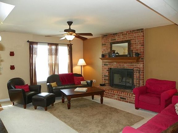 Magnificent 3 BR home sits on private lot that backs up to woods! Inside warm up to the brick wood burning fireplace in the FR that opens up to the DR w/wood floors & enjoy meals in the lg eat-in kitchen w/maple cabinets,stainless appliances,island w/seating,dry bar & glass doors leading to back patio! 1/2 BA on main lvl has maple cabinets.Upper lvl houses the MST BR w/vaulted ceilings,his/hers closets & BA w/sep glass shower & garden tub as well as 2nd & 3rd BRs & a Full BA!Fridge in garage & play set stay! 618.719.3134