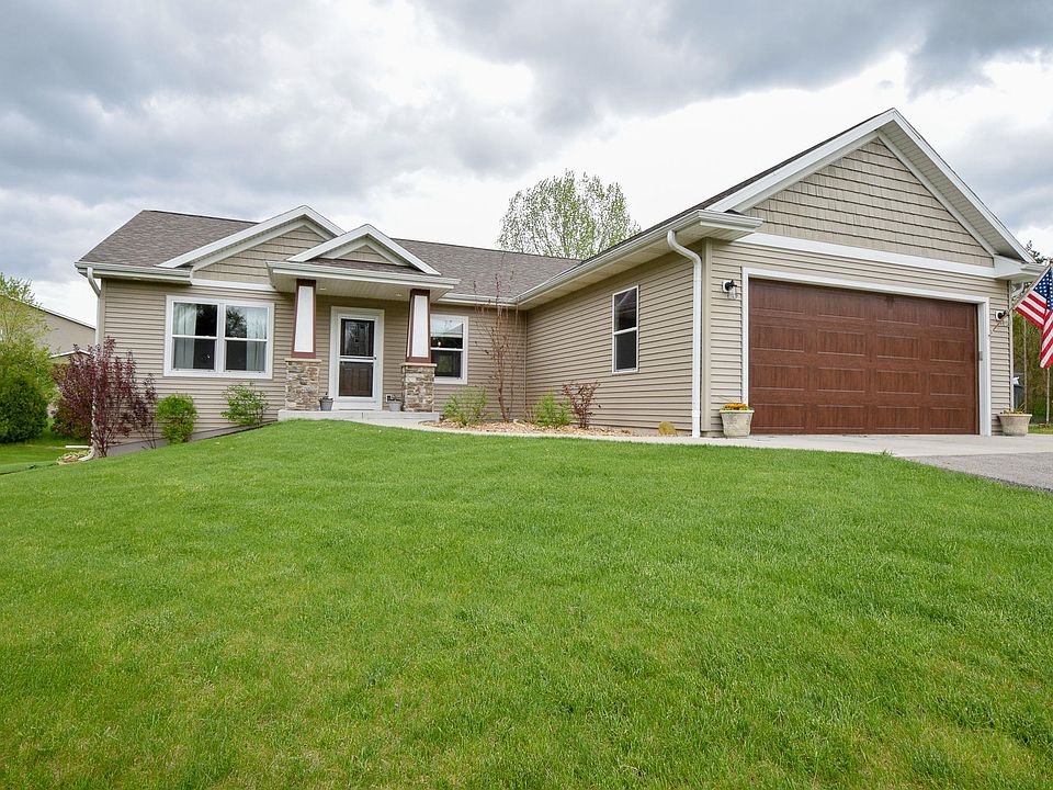 You will fall in love with this open concept split ranch on nearly an acre! Step into the light-filled living/great room with gas fireplace open to kitchen with large breakfast bar & plenty of storage. Dining room with patio doors offer access to deck & fully fenced back yard. Large, private master suite with walk-in closet & updated attached bath with double vanity, tile floors & walk-in shower. Two additional bedrooms & full bath complete the first floor. Lower level features garden windows for plenty of natural light and 4th bedroom & full bath. Entertain or escape to the lower level family room with wet bar, refrigerator, dishwasher & bonus room. Built in 2014, sellers have already upgraded the baths & created fully fenced privacy in the back yard. Nothing to do but move in! Hurry !
