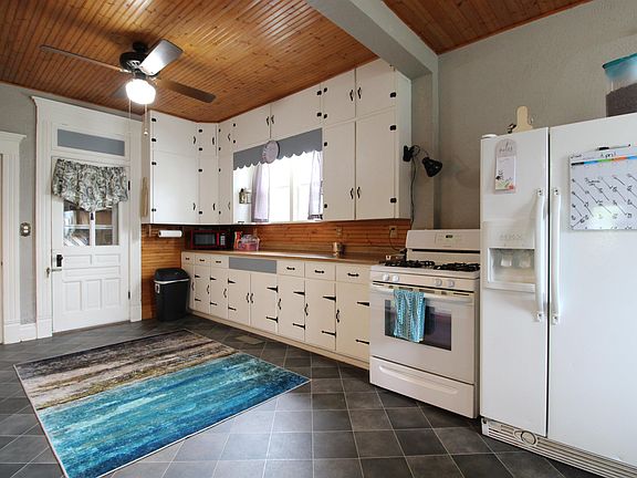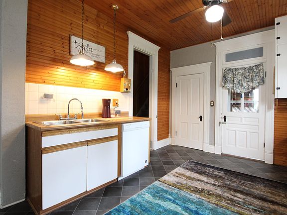 BEAUTIFUL 3 BEDROOM HOME ON MARKET STREET IN WINAMAC - Great room layout with large eat-in kitchen with appliances and pantry. High ceilings throughout. Formal dining room open to the living room. Enclosed front porch with storage closet. Main floor laundry and basement for storage. 2-car attached garage with newer doors and openers. Large landscaped corner lot with patio, storage shed and off-street parking. Excellent location.