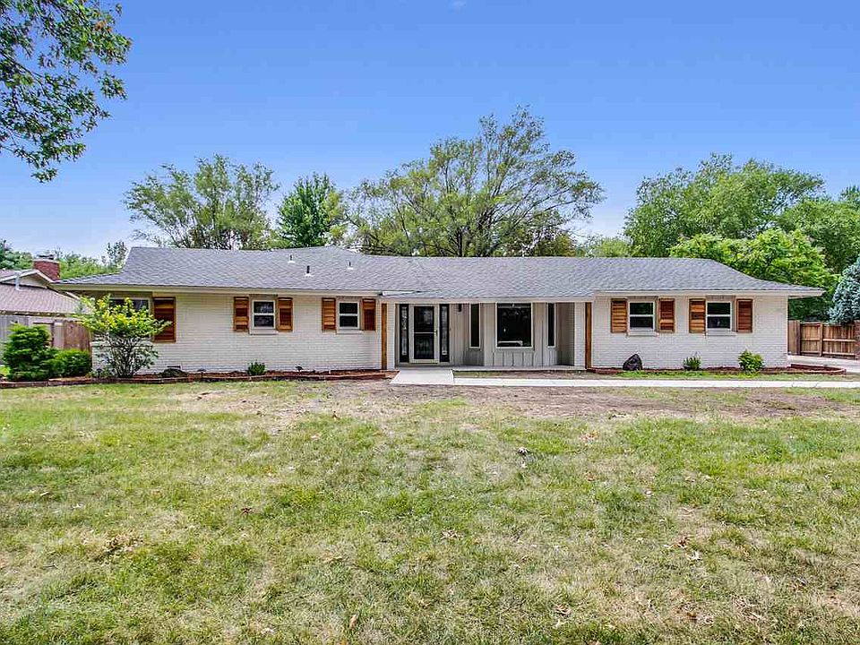 Beautifully remodeled Sprawling Ranch home in Woodlawn Village with 4-car garage new to the market! This ranch home features an ample amount of space - the nearly 3000 square feet on the main level features a stately entry foyer, large open formal living room, formal dining room, sun room with adjacent bar, open kitchen, main level laundry with folding table, huge master suite with on-suite walk in closet, master bathroom with his and her vanities, tile shower and soaking tub, plus attached room to master that could be used as nursery, office or additional walk in closet. There are two additional bedrooms, one which has an on-suite bathroom making it suitable for a secondary master, guest room or oasis for a child. The full hall bath features a large double vanity and tile tub surround. The exterior paint and cedar shutters greet you upon entry. Inside, the new engineered wood flooring, trim accents, and neutral paint will impress upon entry. The kitchen features New quartz countertops, New tile backsplashes, New appliances with slide in range and new faucet. The backsplash and floor tile, countertops, wood flooring, carpeting, some cabinetry, light fixtures, plumbing faucets, and paint are new throughout. All windows, including large picture sunroom windows and both backdoors have been replaced. The driveway approach, sidewalk and back patio have all been replaced with new concrete. Seller member is a licensed real estate broker in the state of Kansas.