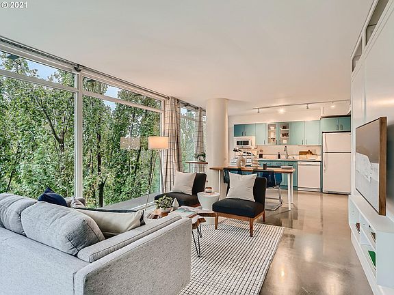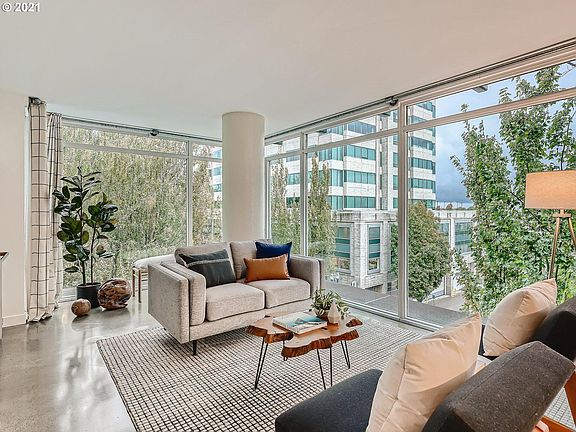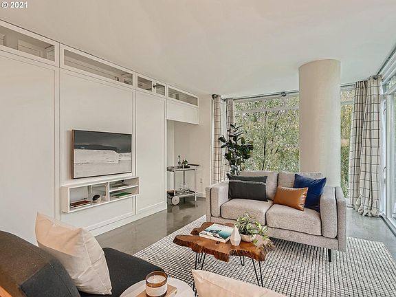 Coveted SE corner unit views:floor to ceiling windows + best light! Gorgeous finishes w/polished concrete flrs,upgraded kitchen ctrs & custom nook/bar. Dining table & shelves integrated around pillar.Stylish accents such as wallpaper & built-in cabinets & shelving for entertainment system.Primary bedrm w/closet system. 2nd bedrm/office.Deeded parking included.Fantastic location MAX light rail at your front door.Easy access to restaurants, shopping & entertainment.Walk Score 91, Bike Score 97!