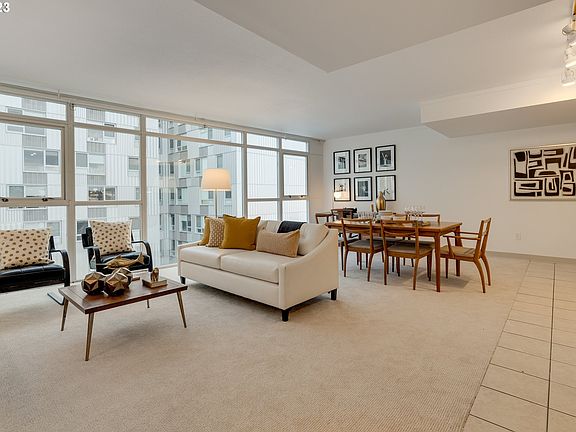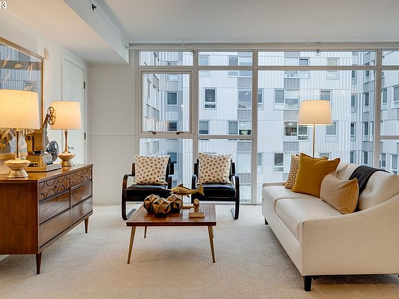 You must see this modern one bedroom, one bath condominium located in the vibrant Lloyd District! This home offers a contemporary living space with an abundance of natural light. The unit has been freshly painted and features new carpet throughout, creating a bright and inviting atmosphere. As you step inside, you'll be greeted by a spacious living area adorned with walls of windows that flood the space with light. The bedroom boasts a huge walk-in closet and provides access to a private balcony where you can relax. The condo comes equipped with a washer/dryer and a gas range. One of the highlights of this condo is its quiet location within the building, ensuring a peaceful and serene living environment. The unit also features a Nest thermostat, allowing you to easily control the temperature and create a comfortable atmosphere year-round. When it comes to shared amenities, you'll be pleased to discover a large outdoor patio on the second floor, perfect for hosting gatherings or simply enjoying the outdoors. Additionally, the condominium complex is conveniently situated just one block away from the 7th Ave bike boulevard, providing easy access to the new bicycle/pedestrian bridge over I-84. Whether you prefer walking, biking, or taking the MAX light rail, everything you need is within reach. A prime location within walking distance of shopping, dining, and entertainment options. The best of city living - you will love living here!