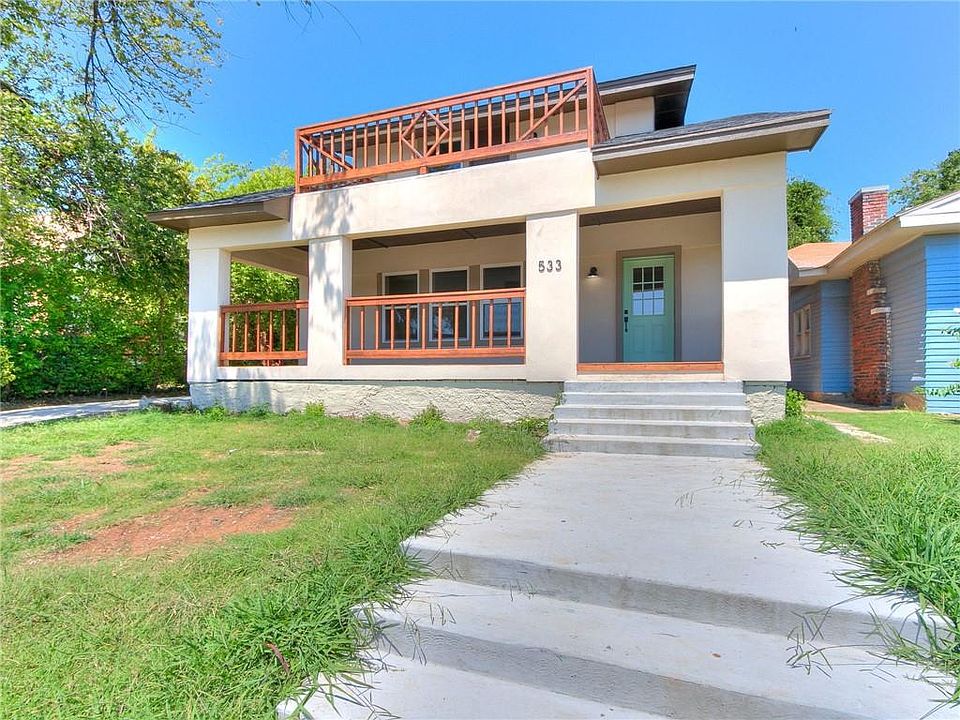 Magnificent total remodel in the Paseo! Wow, check the view of the Paseo and downtown OKC from your private balcony off a fantastic master suite - It's unobstructed and one of a kind in OKC! The floor plan is open and spacious with a gorgeous designer kitchen. The home features a large master suite with a beautiful bath and large closet. The extra bedrooms are nicely sized, one up and one down and one could easily be used as an office. The home also has a terrific large covered front porch to enjoy! Did we mention the brand new two car garage? Wow. EVERYTHING is new from the foundation up and was fully permitted throughout. You will truly fall in love with this special home that is so unique with a front door literally opening up to some of the finest dining and shopping options in the City. Make it yours! (With the heat landscaping hasn't been installed - $2500 allowance with an acceptable offer!)