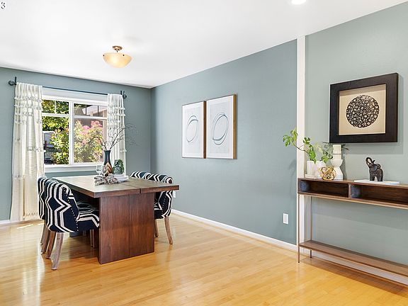 Welcome to this light-filled attached home in quiet Autumn Creek, a small community of just 34 homes in Cedar Mill. Fantastic great room plan with soaring vaults and a wall of windows to enjoy coastal range and sunset views. Relax on the Brazilian Walnut deck with an automatic awning. The open kitchen w/SS appliances includes an eating area, pantry and ample cabinets for storage. Super flexible floor plan has a bedroom and full bath on the main. On the upper level, the primary bedroom with vaulted ceilings enjoys those same great views from its own Brazilian walnut deck. The primary bath has dual sinks and walk-in closet w/custom shelving. A loft/library with built-ins overlooks the great room below and the 2nd upper level bedroom has a full wall of closets and its own bath. From the main level, head down the spiral staircase to a private bedroom or bonus room with an exterior entry. Plenty of room for storage in either the 2 car garage or the tall crawl space. In this ideal location, you're within about a mile of multiple parks, grocery stores, gyms, restaurants, the Sunset Max station and Hwy 26! Miles to NIKE-3, Downtown-6 and Intel-10. And bonus...adorable goats across the street!