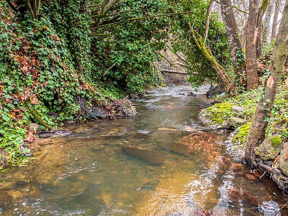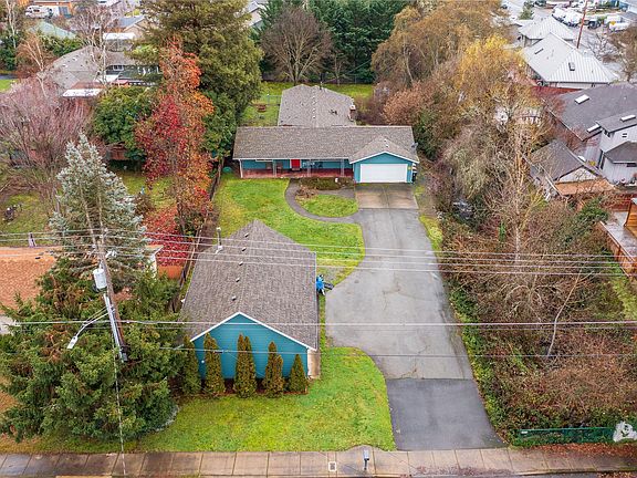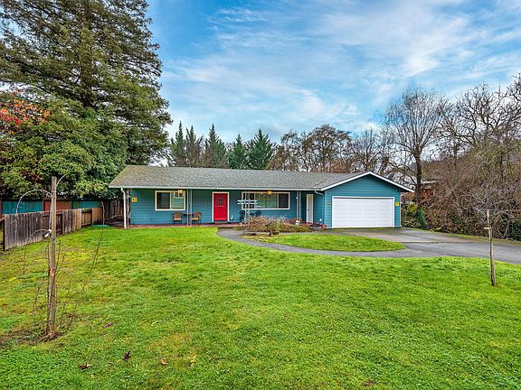 Stately Home located in NW Grants Pass with Covered Front Porch and Gilbert Creek frontage. Knotty Pine accents make this home unique. 3 bdrm 2 bath home 1941 sqft on .56 acre lot. Living room with Skylight and newer laminate plank flooring. Family room with brick fireplace and woodstove insert. Formal dining with wainscoting, hardwood floors. Cooks kitchen with gas range, center island, knotty pine cabinets, tile counters, SS appliances and hardwood floors. Master bedroom has walk in closet, Master bathroom features double sinks, corian counters and walk-in tub. Hall bath updated with granite counters, fancy sink and new vanity along with a handicap accessible oversized tiled shower. Large laundry room with built-ins and counter space. New gas furnace and tankless water heater. Large deck off kitchen to enjoy the extra large backyard. Patio off Formal Dining overlooking Gilbert Creek. Attached Double car garage, detached shop/double car garage with loft.