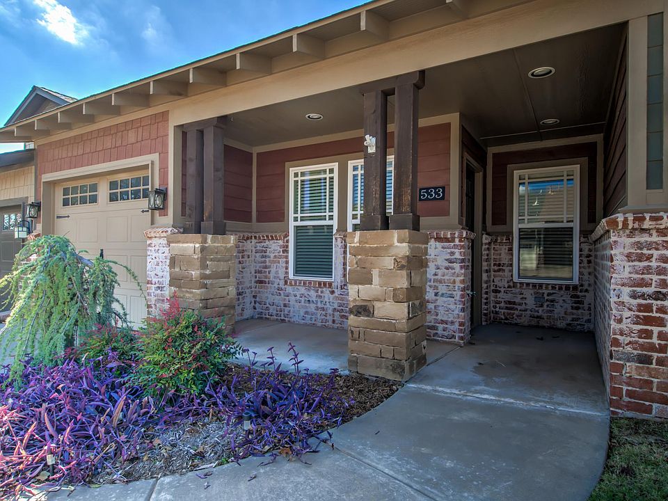 If you are looking for a nicely upgraded, easily maintained, 2 Bed/2 Full Bath Bungalow in a gated, close-knit community, then take a look at 533 Outer Banks Way in The Porches at Arbor Creek!! This home features an open layout with natural light from lots of windows throughout; Kitchen features granite counters, plenty of space in craftsman style cabinets and stainless appliances (gas range); modern lighting throughout home as well as hardwood floors in all main areas; Raised ceilings in living room plus a covered front porch and back patio; yard is fully fenced; HOA provides full lawncare and sprinkler maintenance plus offers a clubhouse and workout facility @$150 per month - all within short distance from home! This upscale, modern Bungalow will not last long on the market so set your private tour TODAY! Home is ready for immediate move in; Security Deposit equal to one month rent; One pet will be considered with a separate pet fee - The location can't be beat on East side of I35 - within minutes can be on highway or at Lake Arcadia 533 Outer Banks Way will be professionally managed by Top Sail Management in Edmond; We look forward to showing you this home! HOA fee $150 per month - can be negotiated with lease on a longer lease term