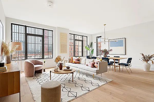 IMMEDIATE OCCUPANCY Residence 7E is a generously proportioned 3 bed, 2.5 bathroom home with beautiful double height curved windows throughout. Post House: A collection of 41 exquisitely-crafted homes designed by Workshop/APD. Step through the dramatic entry tunnel off Pacific Street and find a refined community of tranquility and elevated design. Kitchens feature beautiful custom oak cabinetry with fluted range hoods and dramatic Florim backsplashes, Blue Star ranges, Arteriors pendants and Waterworks faucets. Bathrooms feature double vanities with marble floors and wainscott, stunning vertically stacked ceramic wall tiles, custom recessed medicine cabinets, and fluted vanities with Waterworks fixtures. Amenities include a landscaped courtyard, rooftop communal dining and gathering spaces, a fitness center with sauna and change rooms as well as rooftop fitness, children's playroom, craft studio, pet spa, bike storage, storage and parking available for purchase. Showing now by appointment. Extraordinary Enclosed. THE COMPLETE OFFERING TERMS ARE IN AN OFFERING PLAN AVAILABLE FROM SPONSOR. FILE NO. CD21-0282. SPONSOR: ATLANTIC GARDENS RESIDENCE LLC, 936 FULTON STREET, BROOKLYN, NY 11238. ALL IMAGES ARE ARTIST'S RENDERINGS. EQUAL HOUSING OPPORTUNITY.