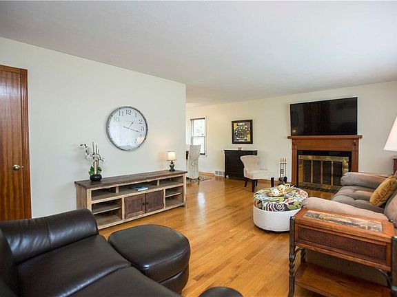 Welcome to this beautiful 3 bedroom 2 bathroom cape cod in the heart of Kent! First floor boasts large great room with hardwood floors, picture windows and ornate fireplace. Formal dining room features gorgeous windows and hardwood floors. Great Kitchen with white cabinets and ample counter space. 2 large bedrooms that have hardwood floors Master having 2 spacious closets. Full bathroom has been newly renovated. There is a Expansive laundry room w/ family entry that complete the first floor. 2nd floor has a charming bedroom with hardwood floors, built ins and massive walk in closet. Lower level is finished w/ endless possibilities! There is also a full bathroom to complete this level. Home sits on a mature tree private fenced in lot w/ deck. Home warranty included.