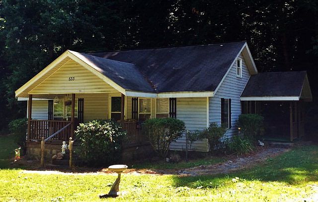 Ideally located between Sylva and Bryson City with quick access to Cherokee and Dillsboro! This house offers excellent year round access, a lovely flat yard with plenty of room to garden, 2 porches to enjoy the soothing sounds of the Creek, and a few years ago central heat and air was installed throughout! The main level consists of 2 bedrooms, a full bathroom, an open and large living room, and a tastefully remodeled kitchen! As a bonus space, the attic has been finished and is currently set up as a bunk room and has a 2nd full bathroom. The Rustic Barn and Creek across the road are include at no additional charge (barn lot is not build-able, but assures privacy) 7611-85-6352 (house & 1.32 acres) and Pin 7611-85-3591 (Barn, Creek, & .97 acres) both convey. The Owners said the house was originally constructed from Hemlock and Cedar, but a previous Owner did not care for the rustic appearance and had vinyl siding installed...