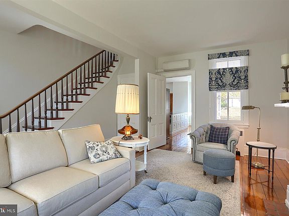 This Stately Mid-19th Century Home has been remarkably refurbished and brought to "New Life". There is hardly an area of this home that has not had a loving hand of care to restore walls, floors and ceilings. Step into the front entry and be greeted by a generous foyer with renewed wood floors and a view of the staircase with impressive curved banister just awaiting your holiday greeneries. The Living Room showcases an attractive fireplace mantel and surround. Beautifully designed window coverings and an entire room of Ethan Allen furnishings which all convey. The Dining Room is complete with table, chairs and bench set, plus a custom Mercantile Cabinet. This Cabinet is full of wonderful prizes as it includes a complete China set, glassware and the list goes on. This leads you into a marvelous space called the Kitchen. This room definitely has the "WOW" factor with its splendid 4' x 8' granite topped island with farmhouse sink, high end under counter storage plus microwave hideaway opening. Samsung Bespoke 4-Door French Door Refrigerator with beverage center set in Cherry Wood enclosure/pantry. (Complete set of orange glass door fronts are in the attic storage). Stunning ILVE 8 Burner Gas Range with 2 electric ovens/rotisserie, range hood with warming lights & high power fans. Complete Kitchen appliance package also includes Samsung dishwasher and microwave. Yes, the Summer Kitchen still remains but has had a major facelift! This charming room has been transformed into a half bath/sitting area with fireplace. Installed Water Closet with Barn Door Closure. Set in place a New Copper Sink on Replica Topped Antique Washstand. Dutch/German lapsiding walls and beadboard ceiling. Upper Level hosts 3 bedrooms and two full baths. Owner's Bedroom has built-on-site platform bed with under mattress storage and His & Hers Amoires which all convey. One bathroom has a sweet Cinderella tub and updated fixtures. The second full bathroom...well... Transport Yourself into total relaxation with the Spa Bathroom complete with Jacuzzi Jetted Tub, accent wall and vanity with marble top. Second floor porch with mahogany decking is the perfect spot to slow down, de-stress and enjoy nature at its best. This simply sensational home has had every nook and cranny considered and lovingly renewed. Such delightful furnishings convey. Don't let this opportunity to own a "Bit of History" pass you by.