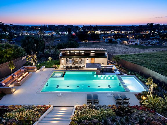 Spectacular resort-like custom ocean view home on one of Solana Beach's premier streets. First time on market new construction w/ocean views from all main rooms, walls of glass opening to entertaining decks, resort pool w/Baja shelf, swim up bar, jacuzzi, firepit, outdoor kitchen & guest house. Immerse yourself in the finest of materials. Magnificent chef's kitchen plus prep kitchen. Breathtaking master suite on main level. Extensive Smart Home with solar. Walk to beaches, DM Track & Cedros Design Distrt.