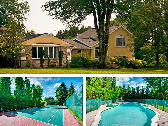 BEAUTIFUL STONE HAMPTON HOME ON CORNER LOT W/ POOL & TENNIS SPORT COURT. RENOV. 2017 - FRESHLY PAINTED ROOMS, NEW CARPET, GLEAMING HARDWOODS & RECESSED LIGHTING. MAIN LVL MASTER SUITE W/VAULTED CEILING & LARGE BATHROOM W/ SEP JACUZZI & SAUNA. GOURMET KITCHEN, STAINLESS STEEL APPL. DINING RM OVERLOOKING THE STONE PATIO. NEW 2-STORY ADDITION FOR SEP OFFICE OR IN-LAW SUITE W/ FULL BA & REC RM.