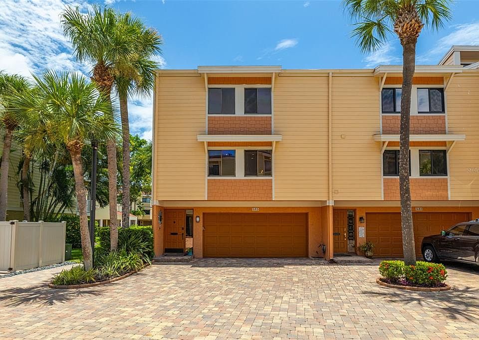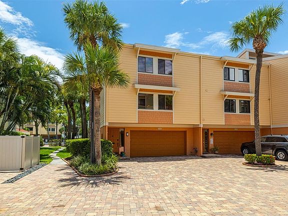 Welcome to your Treasure Island END-UNIT townhome getaway! Located in the sought-after Village of Paradise Island, this move-in-ready townhome offers the perfect mix of beachside convenience and upgraded everyday living within minutes from Treasure Island Beach. With 3 bedrooms + Flex Space, 2.5 bathrooms, approximately 2025 sqft of living space, an oversized 2-car garage, and a fully finished bonus room, there’s plenty of space for guests, home office, or an additional lounge or media area. The first floor offers a spacious 2-car garage with durable epoxy flake flooring, along with a convenient laundry closet. The bonus room stays comfortable year-round with its own mini-split system and opens directly to a covered lanai, the most ideal spot to unwind after a day on the water, just steps from one of the community pools. The second floor is designed for entertaining with a bright, open layout connecting the kitchen, dining area, and living room. A cozy wood-burning fireplace creates a warm focal point in the main living space. Bamboo flooring (2018) adds style and durability throughout the living areas. The kitchen is both functional and beautifully appointed with granite countertops, stainless steel appliances, and solid-wood soft-close cabinetry featuring smart storage upgrades like pullouts, custom spice organization, and under-cabinet lighting. With two walk-in pantries and a double-oven range, this space is set up for anyone who enjoys cooking or hosting. Outdoor living is a highlight here, with multiple balconies featuring low-maintenance Trex decking, plus a custom metal spiral staircase that provides easy access down to ground level. Upstairs, the private third-floor layout includes the primary suite and two additional bedrooms. The primary retreat feels like a getaway with its own balcony, high ceilings, and an oversized walk-in closet with custom built-ins (2024). The ensuite bath delivers spa-like comfort with dual vanities and an upgraded shower featuring dual shower heads (2018 renovation). Beyond the home, the community offers an unbeatable lifestyle with two pools, ample guest parking, and a deep-water marina and fishing dock, along with over 20 boat slips available. The neighborhood is also pet-friendly and golf cart-friendly, and sits next to Tennis Bay Golf & Tennis, offering golf, tennis, and pickleball nearby. Plus, you’re only a short drive to downtown St. Petersburg for museums, dining, and nightlife. Monthly HOA dues provide excellent value and include insurance, exterior maintenance, cable & internet, water, sewer, trash, exterior pest control, landscaping, and pool service, along with access to the fishing dock. You’ll also enjoy a welcoming, social community with regular events and gatherings. This is your chance to own a beautifully upgraded coastal townhome in one of Treasure Island’s most desirable waterfront communities. Schedule your private tour today!