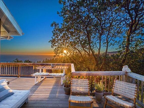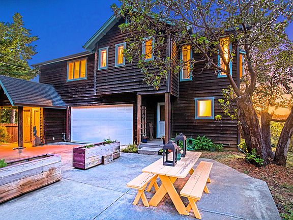 Attention nature lovers! Ocean view home on 2 lots with expansive decks on both levels. Very private setting with sounds of songbirds, wildlife and the ocean. Enjoy hikes with the nature trail just steps from your front door. Upper-level features: Open and bright floor plan, adorable kitchen, primary bedroom with deck, large reading nooks in the living room, bright dining area, and stunning views of the ocean from every room. Lower-level 1-1 studio w/ private entrance, small kitchen, dining nook, and is surrounded by mature madrone trees, with a large private deck for outdoor lounging, along with an outdoor shower. Many recent upgrades, including the redwood fence, expanded decks, new lighting, and more. Great location with beaches, restaurants, golf, pilot's landing strip minutes away.
