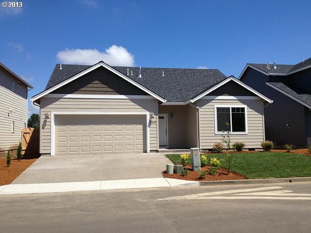 Completed! Contemporary 1 level open floor plan. The large inviting entry leads to the living room w/ vaulted ceilings, inside laundry w/pantry/closet, carpet in bedrooms & laminate in kitchen, dining & living, cherry cabinets, tile counters & gas furnace. Seller will provide front landscaping w/sprinklers, back yard fencing only & garage door opener.