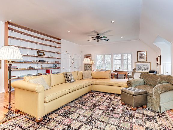 Sun-filled 2,840 square foot top floor of stone carriage house privately situated on a beautiful four-acre estate with outdoor living space designated for the occupant's enjoyment. The interior with hardwood flooring and extra high ceilings includes a Great Room with built-in shelving and cabinetry; dining area; and a well-equipped kitchen with breakfast counter. Two main floor bedrooms include en suite baths. The loft-like second floor with sky lights could serve as either the third bedroom or home office. Laundry room; central air; security system; cable/internet wired. Grounds maintenance and snow plowing included. Sorry, no dogs allowed. Two outdoor parking spots available.