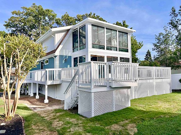 Upgraded to the max! Marina District, with a coastal chic feel and farmhouse charm, blended into one incredible lot, property and home!! This home is only one block to the bay and Longport bridge and in the most sought after location of Somers Point. An absolute one-of-a-kind custom built home that will not come up again! It's designed with both comfort and functionality in mind. The re-imagined Lindale Cedar structure has all new ocean blue siding and white board and batten on the exterior. Newly renovated kitchen and bathrooms, luxury vinyl flooring, coastal shiplap throughout, and wrap-around decks offer a blend of modern amenities and classic charm. There is a new four car asphalt driveway lined with beautiful new landscape beds and a front yard space with fresh sod and stepping stones. The main level's primary bedroom with its own luxurious bathroom and walk-in closet, along with sliding doors leading to the enclosed glass patio and large outdoor deck, is the perfect retreat. The open floor plan connects the kitchen and living area to a spacious deck offering plenty of room for relaxation and entertaining, along with marina views. The upper floor is a children or teen’s paradise with a flex hang out space or gaming room, 2 bedrooms and a newly renovated bathroom. There is an upper-level balcony in the front of the flex space and back decks that are enclosed in the sun atrium. The first floor double doors lead to a 12 foot high walk-out basement that is ideal for a game room or entertainment area with its own brand new high efficiency HVAC system. Plumbing and electric throughout the home has been upgraded. This lower level connects to the main level via a spiral staircase. The lower level also houses the second zone hvac and the new high efficiency water heater. This home has been newly converted and upgraded to public water from well! The inclusion of a bedroom and half bath in the lower level makes it versatile for guests or extended family stays. Three levels of living offer endless possibilities for families to enjoy. Moving back outside, there is a large two-car detached garage with a driveway that extends out to Pleasant Ave situated next to new construction. The garage also has a loft, offering ample storage for beach gear, boats, or any other needs—an excellent complement to this already impressive property. Behind the two car garage, there is a beautiful backyard with luscious grass, meticulous landscape beds and access to the wrap around decks. The proximity to Historic Old Town, marinas, Bay Ave, and the multi use bike path adds to the appeal, making it a perfect choice whether as a second home near Ocean City or a year-round residence benefiting from Somers Point's charm and excellent schools. Exceptional long term neighbors that look out for one another is just a bonus. Overall, this home offers a unique blend of modern updates, spacious living areas, and outdoor amenities, all in a fantastic location on an impressive lot. Truly a one-of-a-kind dream home with tons of space for family fun and entertaining! Make your appointment today!