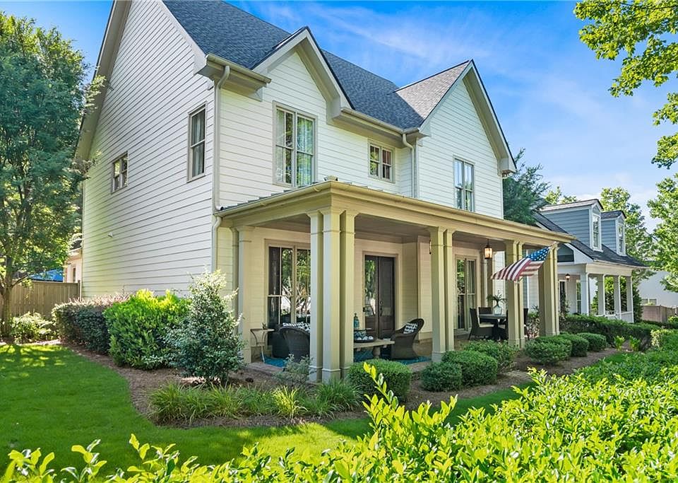 Welcome to your quintessential Southern retreat nestled in the highly sought-after Crabapple area, where vibrant community living is at your doorstep. This exquisitely updated 5 bedroom, 4 bathroom masterpiece is ideally situated within walking distance to eclectic restaurants, lively breweries, and boutique shops, ensuring every day is filled with leisurely strolls and culinary adventures. Step onto the wide, welcoming front porch, perfect for lazy afternoons and friendly chats with neighbors. The back porch beckons with its cozy fireplace and a playful putting green, ideal for entertaining or unwinding in style. Inside, this home exudes elegance and comfort with its custom features and thoughtful design. Ten-foot ceilings, built-in bookcases, and a main-level bedroom with a renovated, cool custom bath add to the allure. The heart of the home, an open-plan layout, boasts a stunning white kitchen adorned with quartz counters, funky Horchow lights, and chunky gold cabinet hardware. The adjoining dining room feels like a sunroom, enveloped by two walls of windows and a modern glam chandelier, creating a perfect ambiance for memorable meals. Gleaming hardwood floors flow throughout, enhancing the home's sophisticated charm. Upstairs, discover four beautifully appointed bedrooms, including a luxurious primary suite featuring a newly updated spa-like bath and two custom-designed closets that redefine organization and elegance. Even the laundry room showcases personality with its fun floor tile. Meticulously maintained, this home has been upgraded with a new roof, hardwoods throughout the home, patio/fireplace putting green at the rear of the home, fresh paint inside and out, updated baths including luxury primary bath tile floor plus exquisite fluted dual sink vanity, Horchow and Kate Spade designer light fixtures and more, ensuring worry-free living for years to come. Located near the Milton City green, enjoy community activities like farmer’s markets and concerts, adding to the vibrant lifestyle this location offers. And, Award-winning Milton High, Northwestern Middle and Crabapple Crossing Elementary schools are all walkable as well! Don’t miss out on the opportunity to own this exquisite home where charm meets luxury—schedule your private showing today!
