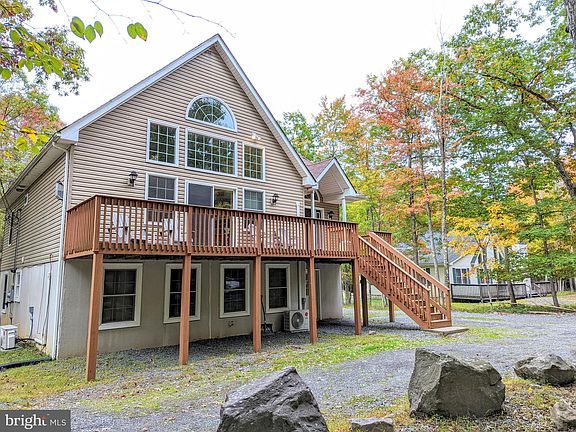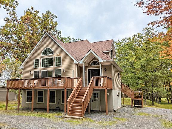 Welcome to this 5 bedroom, 2.5 bath raised chalet in the amenity filled Towamensing Trails. As you enter the ground level, you can store your shoes & skis in the mudroom & step into the game room! A large bedroom, half bath, laundry and garage entrance complete this level. Upstairs, the main level features an open floor plan with an eat-in kitchen, large dining space and spacious living room with cathedral ceilings and features a propane fireplace. Two additional bedrooms and a full bath complete this level. As you continue up to the loft, there are two more bedrooms with cathedral ceilings and a full bath. Enjoy spending time outdoors on one of the two decks or relax in the hot tub privately overlooking the backyard. Upgraded septic (5 bedroom) in 2022, tankless water heater 2020.