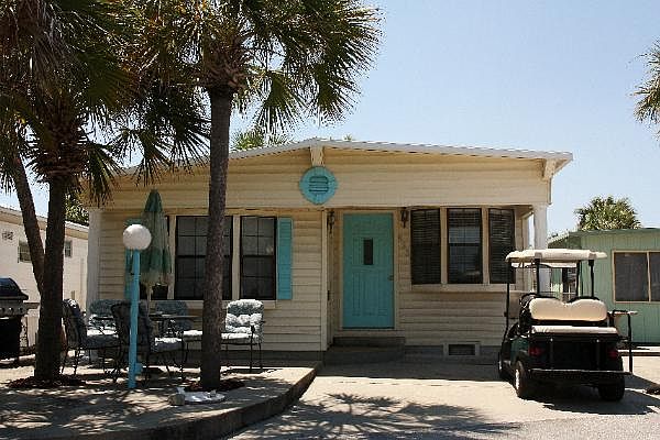 Fantastic location and perfect floor plan is what you will find here in this 2 bedroom 1.5 bath Venture Out home. This home is beautifully decorated and will be sold furnished. The home has new countertops and backsplash in the kitchen, new paint, and new furnishings inside and out. You will love beachy decor and the large front porch, perfect for relaxing after a long day at the beach. Don't wait this one will go quickly! Venture Out is a golf cart community that has exploded with popularity recently... With 300' on the beautiful pristine beaches of the Gulf of Mexico and 1,000' on the Grand Lagoon. Venture Out has something for everyone. With 2 pools, fishing pier, boat ramp, mini golf, children's play ground and much much more!