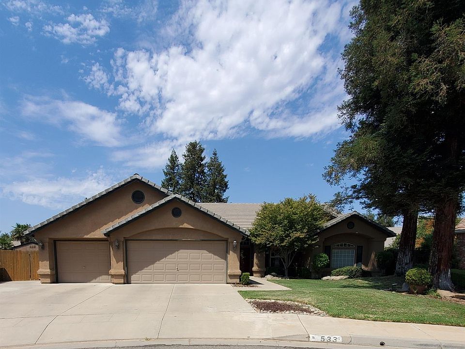 This grand home located in the prestigious Clovis Unified School District has all the amenities one could ask for. Sitting on a cul-de-sac lot with potential RV parking, a large sitting area with synthetic lawn, and a pergola for outdoor entertaining, while on the opposite side of the large backyard is a built-in pool and spa with a covered patio. The interior of the home has 4 bedrooms and 3 baths, a formal living room, dining room, family room and a beautiful gourmet kitchen. The kitchen has granite counters, recessed lighting, and breakfast bar. The living room has a brick gas fireplace and high ceilings. The beautiful dark laminate wood floors throughout the main areas of the home give it a warm feeling. The very large master suite has a sitting area with a door leading out to the pool area. This home has been beautifully done in neutral tones and has so much to offer.
