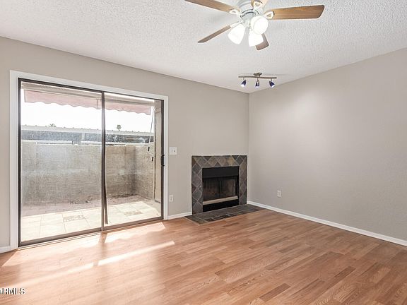 Home, sweet home! **FRESH paint, newer water heater and great condition** Upon entering, you will immediately notice the inviting living & dining room paired with wood-look flooring, sliding glass doors that open to the back patio, and FRESH neutral paint throughout for a welcoming atmosphere. The kitchen displays track lighting, plenty of cabinets, granite counters, built-in appliances, and a convenient breakfast bar. Continue onto the sizable primary bedroom to find a walk-in closet and a private room with a step-in shower. Location is prime as you are close to many things, including freeway access! Location of the unit is more private than most, being in the back of complex and close to one of the two pools! **HOA covers your water/trash and blanket insurance**