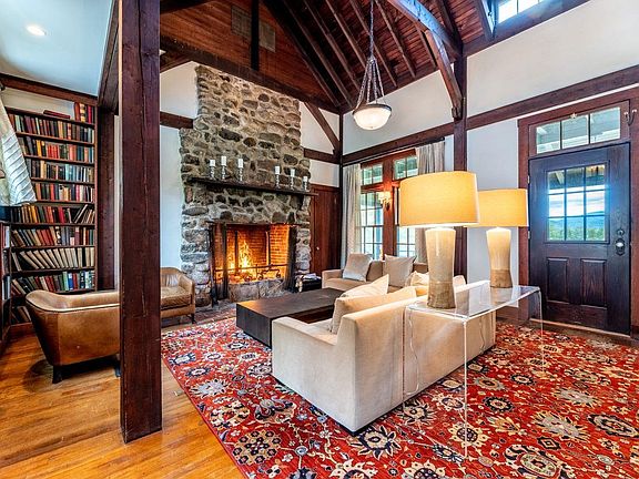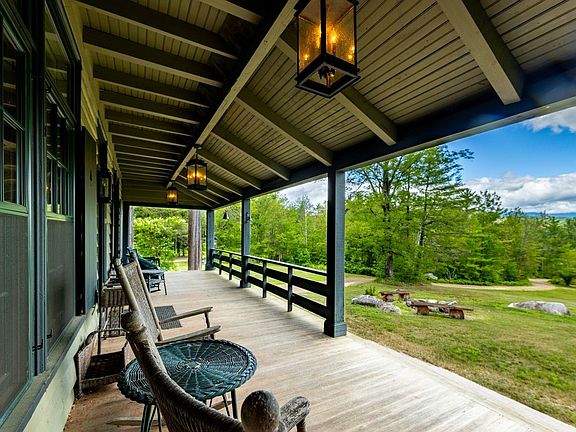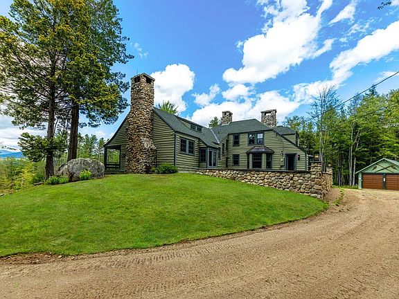 The beauty of the White Mountains unfolds from the 35’ covered veranda of “Glenbrook”, an Adirondack style home with views of Mt. Washington and the Presidential range. Built between 1903 and 1908 on 22.75 acres, this four-bedroom four-bath home has been meticulously restored preserving the old-world charm and including modern amenities. Two centerpieces of the house are the great room with its 25’ wood ceiling and stone fireplace, and the formal dining room with real copper ceiling tiles. A large modern gourmet kitchen features a gleaming Brazilian walnut floor, antique custom oak cabinets, slate countertops and sink, butcher block island, stainless appliances, twin dishwashers, and a dual-fuel range with hood, as well as a breakfast nook overlooking the patio. A butler’s pantry provides plenty of extra storage and a wet bar. The unique layout offers privacy within the house including a primary bedroom suite in its own wing with brick fireplace, bath, and dressing room/study. The property is rich in history. Formally known as “The Crags” it is the remaining piece of a once larger 500-acre summer estate and continues to offer privacy and seclusion yet is just minutes to Attitash Mountain Resort, Cranmore Mountain Resort, Wildcat Mountain Ski Area, and North Conway village. More than a 1000’ of rebuilt stone walls line the driveway entry, 14 acres of woods/trails to explore, and large open areas. The perfect mountain retreat in the heart of recreational opportunities.