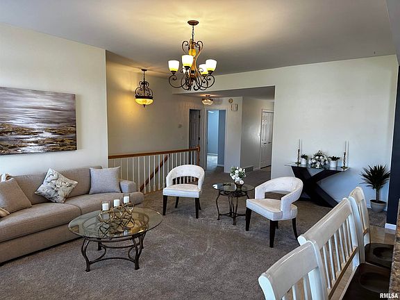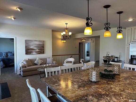 Beautiful, bright and spacious open floor plan! Custom designed kitchen with extra large island measuring at 92 x 60! Main floor laundry, full finished walk out basement offers extra large family room with bar. 2 additional bedrooms with a shared bathroom. There is an abundance of large closet space throughout. New carpet and water heater 2022, Roof new October of 2023. Nice deck takes you to a large back yard with patio below.