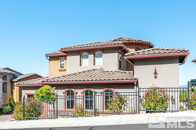 Fantastic City and Mountain Views. Stunning home located in Belsera Community first off of McCarran in Southwest Reno. Private front court yard. In addition to the 5 bedrooms, there is a nice office with custom shelving on the main level. There is a family room on the main level with an additional game room in the finished basement along with a theater room. The master bedroom is located on the main level with its own private balcony with City views.