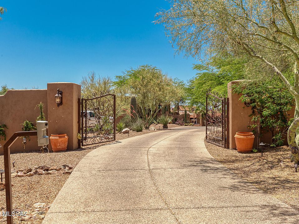 Situated on 3 acres behind a private gated entrance, this beautiful resort-style estate is surrounded by serene desert landscape and city & mountain views. With 5 BR's, 4.5 BA's and a separate office, the home is an expansive 6,048 Sq Ft with no HOA. Entertain friends & family in the spacious yet private backyard which includes pool, waterfalls, ramada, outdoor kitchen, fireplaces and grass. Fully equipped chef's kitchen with Viking SS appliances, including double ovens, wine fridge, and 6 burner gas cooktop. The main level romantic grand owner's suite features a fireplace, enormous walk-in closet, large bathroom with dual vanities, jetted tub and walk-in shower. Upstairs you will find a second ensuite and three additional guest bedrooms with access to the covered deck and roof deck.