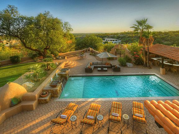 * A magnificent 3 acre privately gated Foothills Estate w/city, mountain & sunset views. Lushly landscaped front courtyard w/fountain invites you into this totally remodeledhome w/over 6048 sq.ft , natural stone travertine flrs throughout, exquisite living rm w/fireplace, formal dining rm, family rm w/fireplace, billiard rm, gourmet island kitchen w/ granite, Viking stainless steel appliances including 6 burner gas stove top, double ovens, wine cooler, breakfast area, TV rm w/fireplace, 5 BR's + office (master suite w/fireplace, lux bath w/jacuzzi tub, lg walk in closet), 4 BA's and 6 car garage w/lift. Resort like living w/pool, spa, waterfalls, ramada , outdoor kit, brick patio, grass, 2 outdoor fireplaces, views, privacy and so much more. Flr pln located under photos/virtual tour.