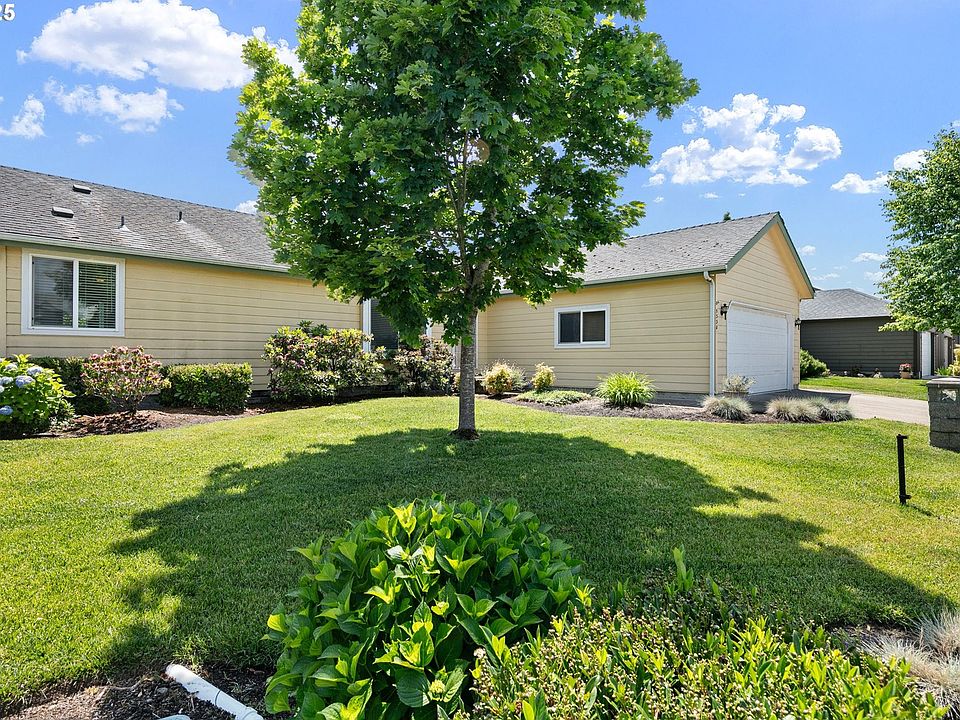 Tucked within the inviting West Eugene Village community, this well cared for home does not disappoint. A rare 4 bedroom that features great separation of space, central heat and AC , vaulted ceilings in every living space & bedroom, and tons of storage. A NEW ROOF has been scheduled and will be done before the new owner takes over. Step into the spacious primary suite where you will love the walk-in closet and primary bath with both a soaker tub and step-in shower. The other three bedrooms are on the opposite side of the home and are plenty big enough to fit all your needs. The living room and kitchen are perfect for entertaining. There is ample space for a dining table and an island with an eat bar. Abundant cabinet space is supplemented by a pantry and dining built-ins. The washer and dryer will stay in the utility room where there is space for even more storage. Relax on the covered back patio and enjoy the mature landscaping. Underground sprinklers make maintenance a breeze. Take a drive through the community to see the private playground and picnic area. This is an amazing place to call home. Call your broker for a private tour or visit our open house Saturday, October 25th from 12-3pm.