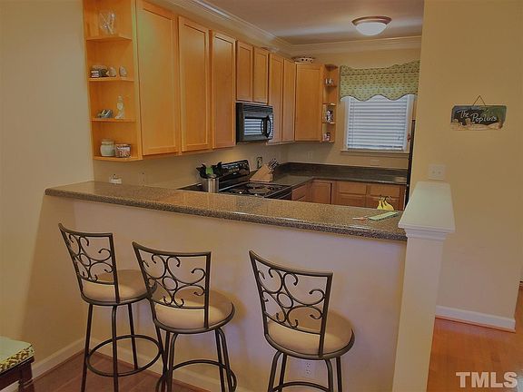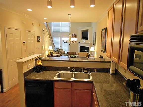 END UNIT TOWNHOME has extra style & upgrades from having been the original sales model!! Pretty hdwds on the main floor; extensive moldings; 9' and volume ceilings---coffered in the LR; kitchen has 42" cabinets w/2 Lazy Susans; all bedrooms have private baths; spacious master suite has champagne bath with jetted tub & separate shower; generous closet space throughout; welcoming front porch and private deck with storage closet; garage has storage space. too. Community clubhouse and pool for summer fun!!