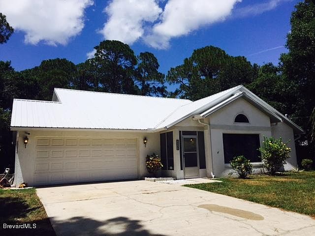 You must see this beautiful, clean, ready to move in home. large spacious living room, house is much larger inside than it looks from the outside. cbs construction, Large master suite with separate tub and shower, Walk in closet! Metal roof, with 2 yr new ac and carpet, vaulted ceilings! The Florida room with spa is a delight! Back yard is quiet and private,with mature landscaping. Plant shelves, kitchen pantry, large 2 car garage. Convenient location, 35 min to orlando airport and 20 min to the Cocoa beach, You won't want to miss this gem!