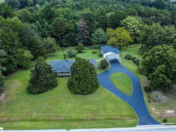 9.1 Acres - This is the epitome of rural living but just minutes to small thriving towns (Travelers Rest, Greer, Hendersonville). A rare find in the Locust HIll/Travelers Rest area. That's right - This gem is located in Northern Greenville County! Solid, well cared for 3 Bdrm/1 bath brick ranch home with beautiful hardwoods through out most living area of home, spacious kitchen with knotty pine cabinets, and walks off to enclosed sunroom that could easily be converted to additional space, mudroom, laundry or enjoy time on the porch. Also off the kitchen is a formal dining room that flows into the spacious living room with fireplace. Beautiful hardwoods through out with exception of kitchen and bathroom. There is a 28X24 detached garage that has a 12X21 attached storage room on back of garage and a 17X12 heated/cooled attached workshop that was used for wood working with covered shed areas on front and back. There are a couple of old barns on property. This land is just beautiful!!!!!! NOW, if you are fueled by passion to restore old homes, you will love the old Craftsman Home that also sits on this prime land. Plenty of possibilities like restore and sell, or create a dreaming Airbnb that sits in perfect location to Greenville or Hendersonville and surrounding areas. So many possibilities with this 9.1 prime piece of real estate. No restrictions so it allows countless possibilities as the land boarders two roads; State Hwy with over 400 feet of road frontage!!!