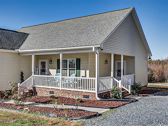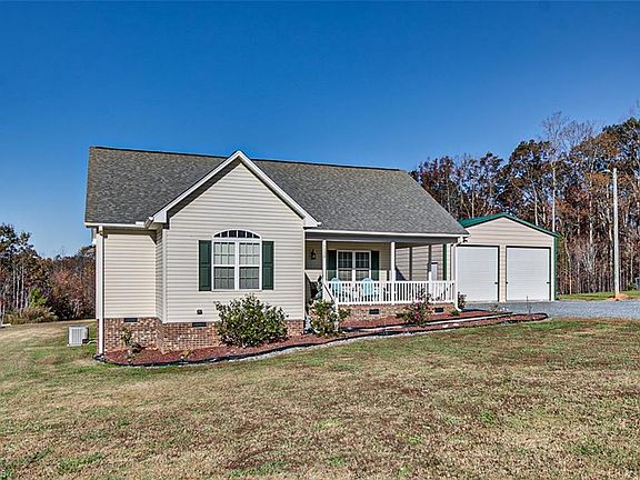 Rurally located on Old NC Hwy 13 in Randolph County on 1.39 acres. Sit on the back deck and enjoy the deer. The wrap around front porch will definitely grab your attention when you arrive. Or maybe it will be the 24 x25 detached double garage that was added in 2019. This charmer feels so spacious with 9' ceilings throughout & an open floor plan in the main living areas. The kitchen offers custom cabinets, SS appliances including refrigerator, pantry, & new LVT flooring. The owner's suite has an enormous walk in closet and private bath. New carpeting in all bedrooms. The laundry room is a bonus for sure!. Concrete pad & basketball goal in back yard.