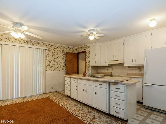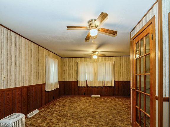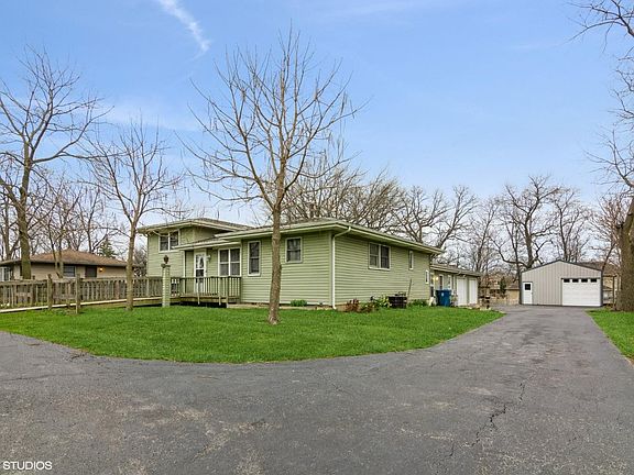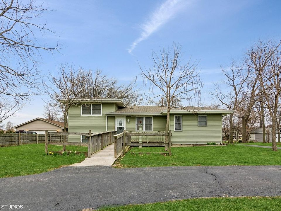 Quad level on a half acre with a U-shaped driveway! 'There are 2 bedrooms upstairs (one was used as a kitchen) and a full bathroom. Main level not only has a very large eat - in kitchen and living room, there is also the main bedroom and full batrhoom!Lower level has a rec room and another bedroom. There is a 3rd bathroom as you come in from the back door and before you get to the stairs going to the basement.There is so much room for storage in the basement AND a shower, too! Battery backup, sump pump in sump pit. There is a gas fireplace in the rec room as you enter the back door off the driveway.Attached 2car garage has wall/door separating the two. The first one has a fridge and an oven in it - great for entertaining! The second garage is narrow due to that fridge in the first stall. You LOVE the 440 sq ft pole barn with very tall ceiling and shelving for storage!
