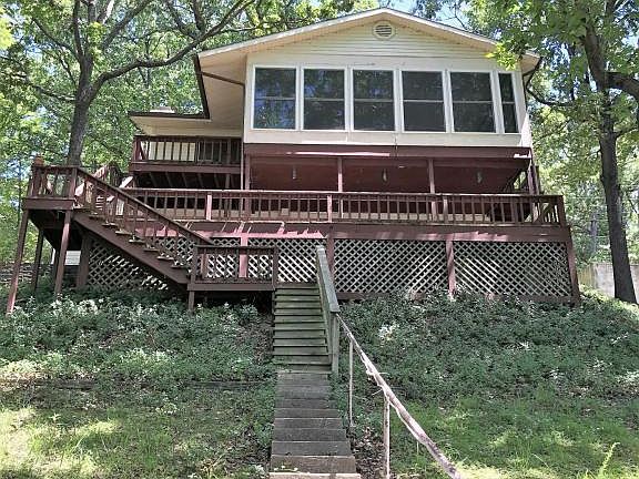 THE LAKE IS CALLING. This peaceful retreat could be the perfect weekend getaway. Lakefront home with 88' of shoreline and deep water, enclosed dock with 10x23 slip, slide and dive platform. 3 bedroom, 2 bath, walkout basement and beautiful rock fireplace. $235,000 MLS 17-502