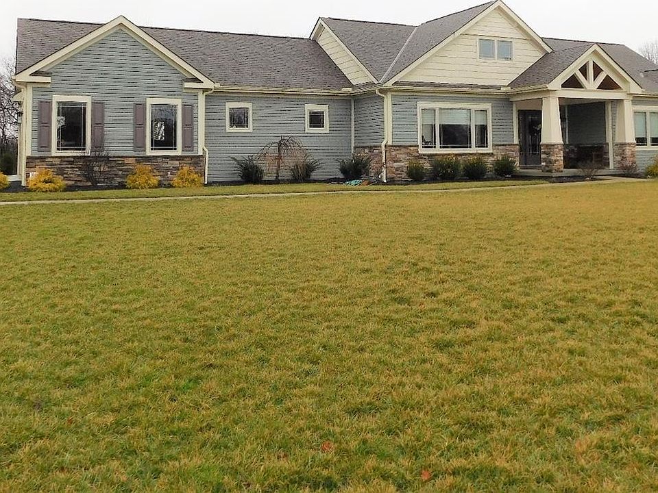 Stunning 2016 custom built home on 1.9ac! Covered entry, volume ceilings, spacious open flr plan, gourmet kit w/island counterbar & walkout to 19x13 covered porch! Formal DR & LR w/gas FP! Large master suite w/private bath, 1st flr study could be guest bdrm, fin LL w/FR, 2 bdrms & full bath! 16x12 shed w/loft, insulated side entry 2-car garage!