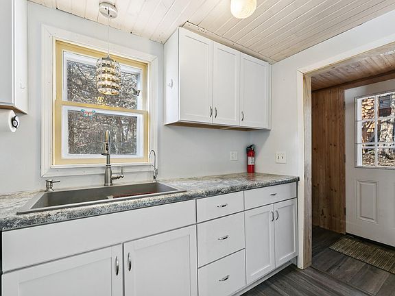 Presenting this charming lakefront cabin, ideal for year-round living! Situated just a short drive from the metro area, this cozy home boasts several updates since 2019, including a new furnace/AC, removal of carpets to reveal original hardwood floors, interior paint refresh, and deck staining.