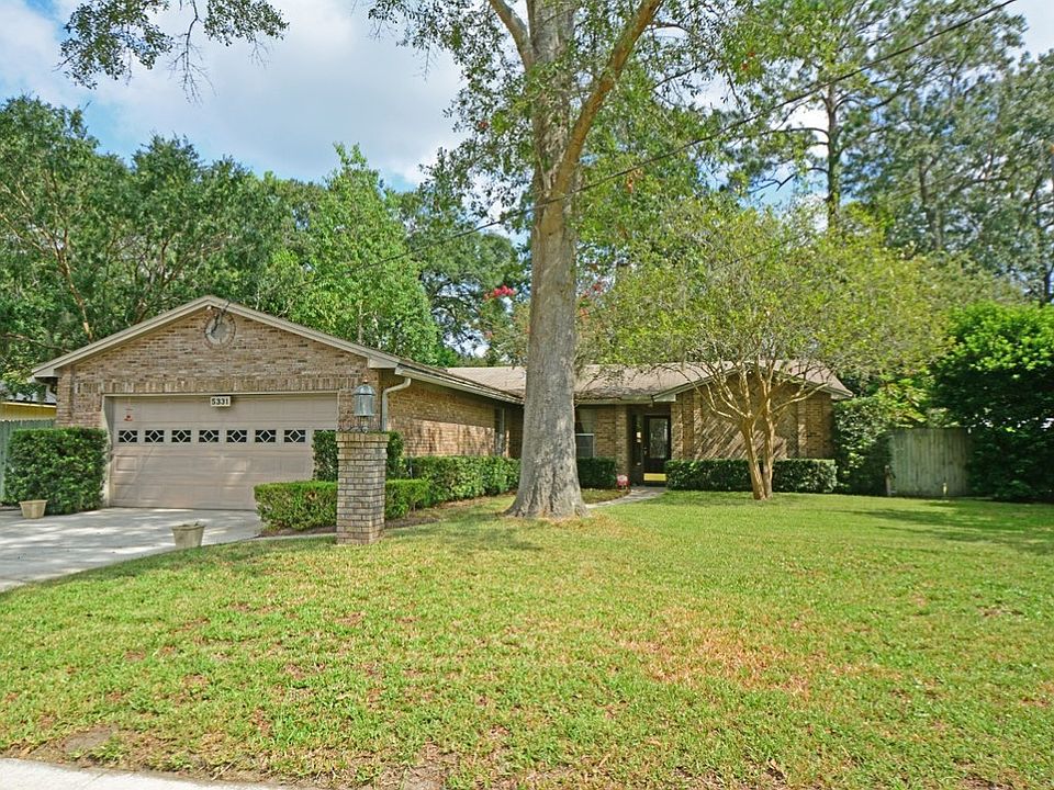 Wonderful 3-bedroom, 2 full bath brick home with split bedroom floor plan. This home features a formal dining room, breakfast area in kitchen, living room with gas fireplace and Florida room that overlooks a fenced backyard with large arbor patio and separate arbor with grapevine. A shed that is approximately 11 x 29 provides excellent storage and workshop area. You will absolutely love the quiet neighborhood, and it is just minutes from I-10 and I-295. Property is being sold As-Is with buyer's right to inspect. Seller will credit $12,000 to Buyer for a new roof at closing with an acceptable contract and terms.